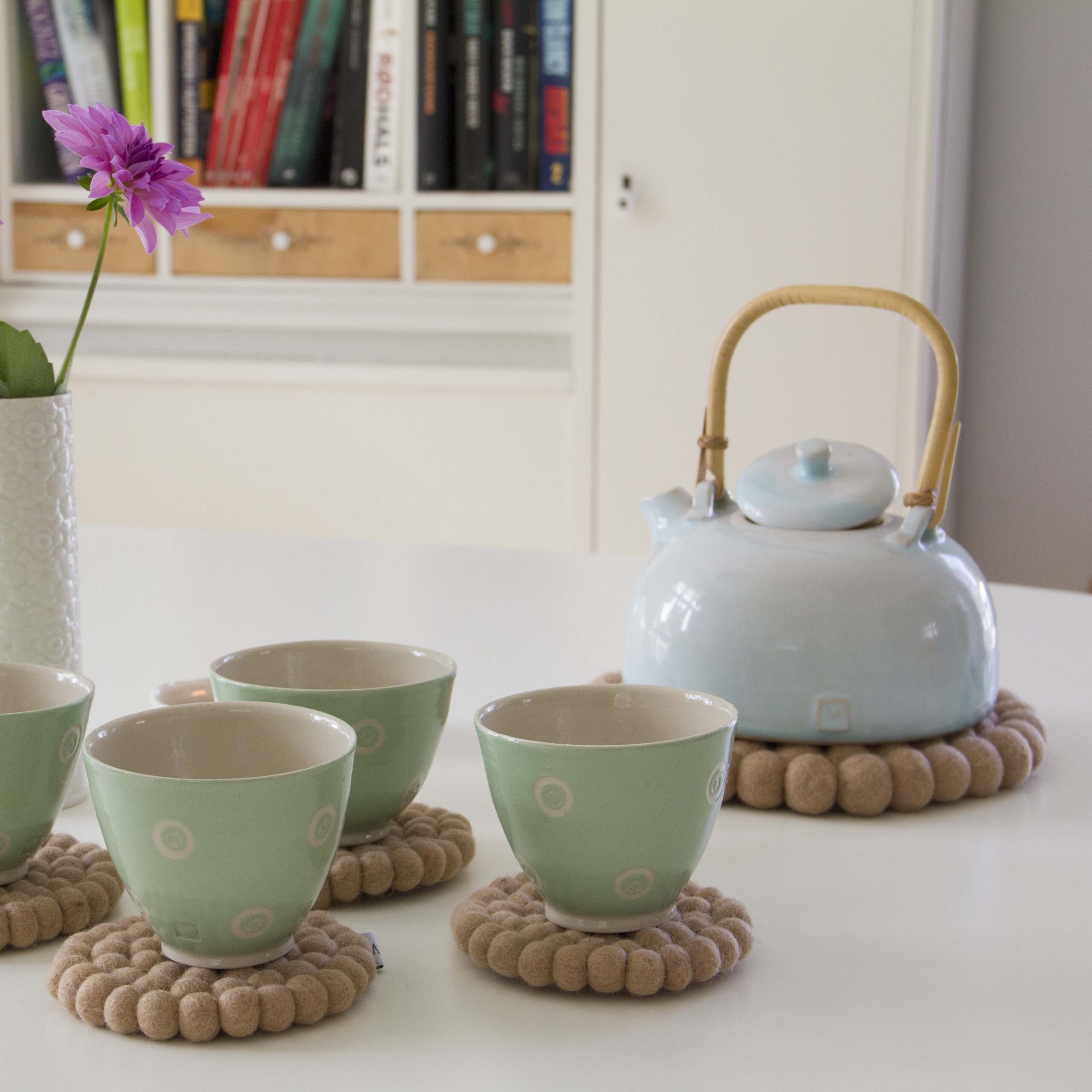 Brug disse smukke og farverige bordskånere under dine gryder, pander og tekander – og skab liv og hygge på bordet.